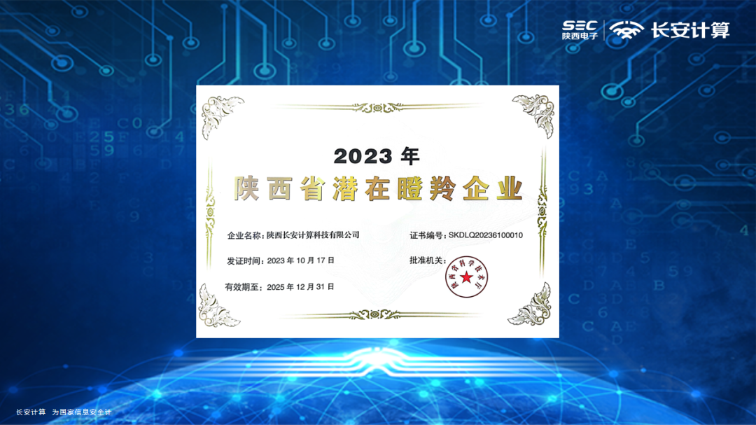 陕西省科学技术厅日前公布2023年陕西省瞪羚企业名单,长安计算在众多参评企业中脱颖而出,成功入选“2023年陕西省潜在瞪羚企业”。